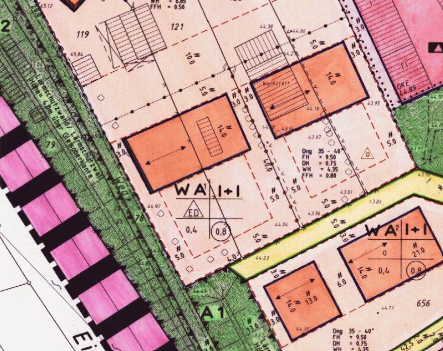 Wie ein möglicher Baukörper genau aussehen könnte, kann natürlich nur durch eine Bauvoranfrage bei den entsprechenden Behörden entschieden werden. Erste Hinweise liefert der Bebauungsplan, der für dieses Gebiet existiert.